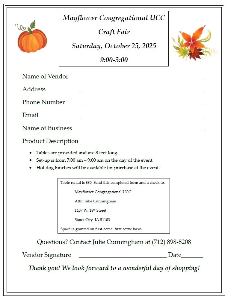 Contact Julie at (712) 898-8208 if you would like to reserve a table to be a vendor.
